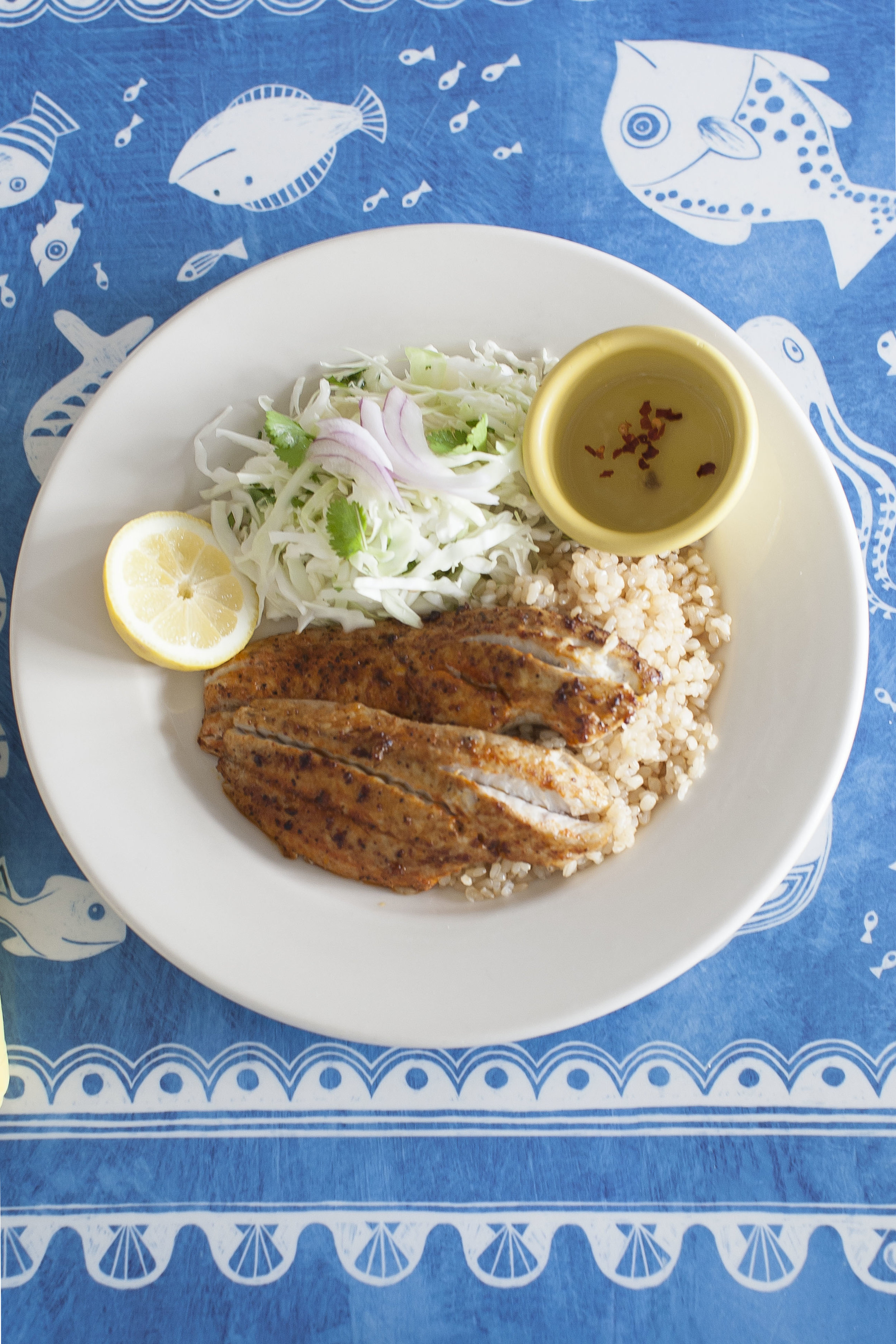All Entrees are served with short grain brown rice and our famous cabbage salad